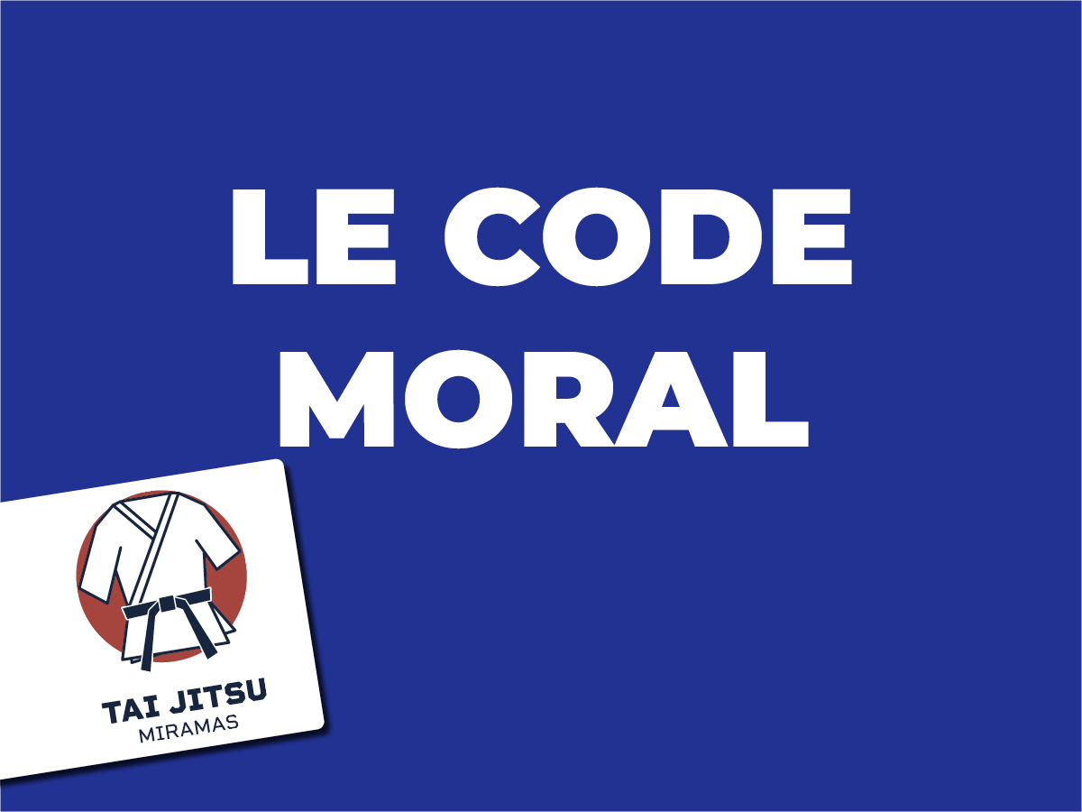 Le code moral est un ensemble de règles, de principes. Chaque pratiquant désirant s’engager dans la voie des arts martiaux doit devenir l’ambassadeur de ces valeurs, dans le dojo comme dans la vie.