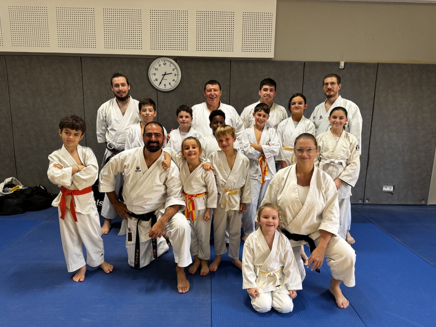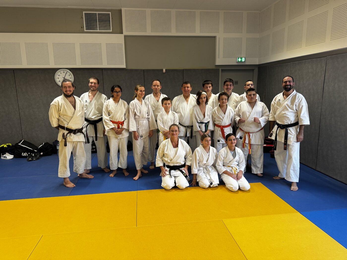 Les ados et adultes ont quant à eux travaillé des techniques de défense aux sols dans un cadre plus orienté vers la self-défense que le travail traditionnel plus figés. Le stage s’est poursuivi avec un travail du ju kumite, un travail progressif partant du kihon ippon kumite et passant par le jyu ippon kumite.